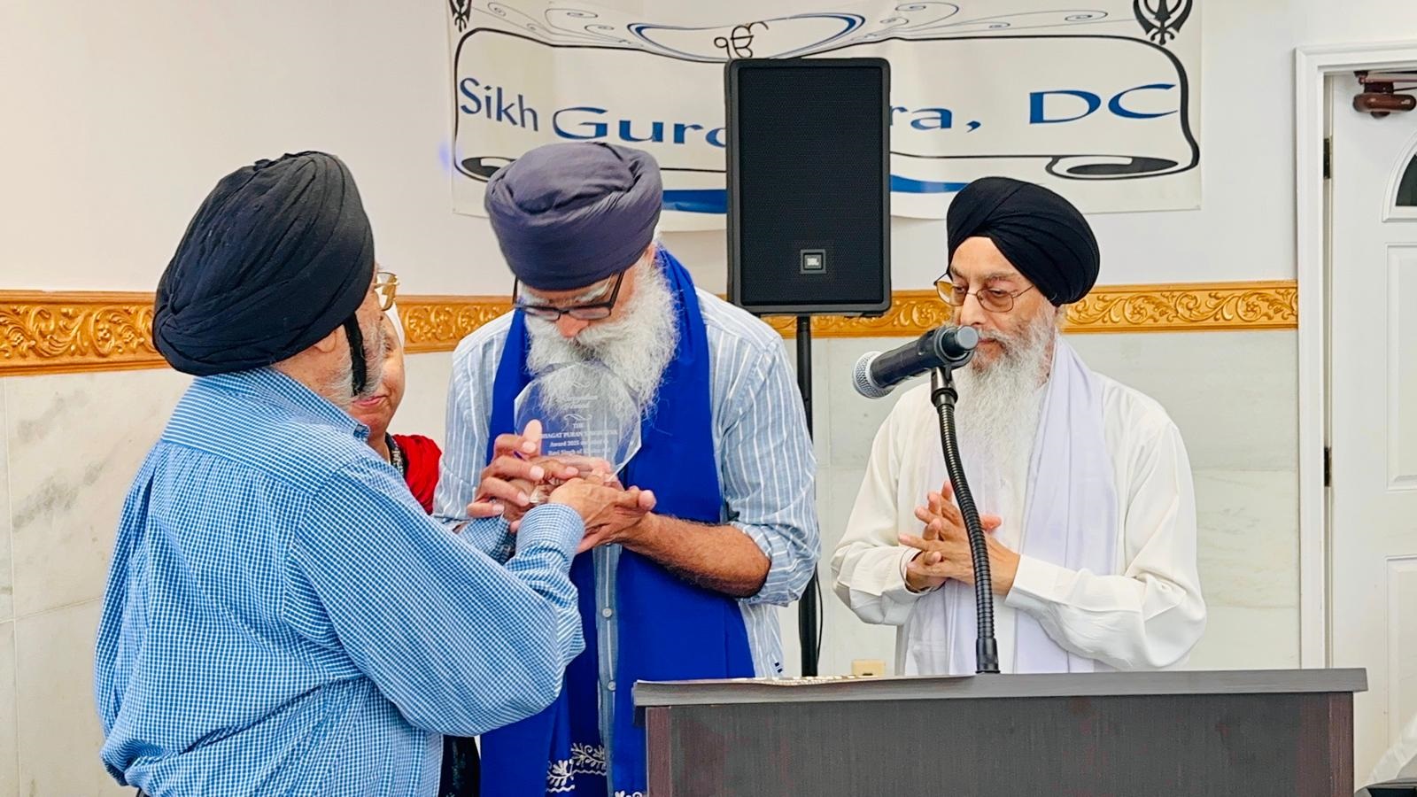 ਮੈਟਰੋਪੋਲੀਟਨ ਵਾਸ਼ਿੰਗਟਨ ਡੀ.ਸੀ. ਦੇ ਇਲਾਕੇ ਵਿੱਚ ਵੱਖ-ਵੱਖ ਗੁਰੂਘਰਾਂ ਵਿੱਚ ਕਰਵਾਏ ਗਏ ਕੀਰਤਨ ਦਰਬਾਰ ਵਿੱਚ ਵਿਸ਼ੇਸ਼ ਤੌਰ ‘ਤੇ ਭਾਈ ਹਰਜਿੰਦਰ ਸਿੰਘ ਜੀ ਸ਼੍ਰੀਨਗਰ ਵਾਲੇ, ਭਾਈ ਨਿਰੰਜਣ ਸਿੰਘ ਜਵੱਦੀ ਕਲਾਂ ਵਾਲੇ, ਭਾਈ ਅਨੰਤਵੀਰ ਸਿੰਘ ਲਾਸ ਏਂਜਲਸ ਵਾਲੇ, ਭਾਈ ਸੁਰਿੰਦਰ ਸਿੰਘ ਜੀ ਜੰਮੂ ਵਾਲੇ ਅਤੇ ਭਾਈ ਜੱਸਪ੍ਰੀਤ ਸਿੰਘ ਫਤਿਹਗੜ ਸਾਹਿਬ ਵਾਲਿਆਂ ਨੇ ਵਿਸ਼ੇਸ਼ ਤੌਰ ਤੇ ਹਾਜ਼ਰੀ ਭਰੀ। ਇਸ ਮੌਕੇ ਭਾਈ ਰਵੀ ਸਿੰਘ ਖਾਲਸਾ ਨੇ ਵਾਸ਼ਿੰਗਟਨ ਡੀ.ਸੀ. ਗੁਰਦੁਆਰਾ ਸਾਹਿਬ ਵਿਖੇ ਹੋਏ ਕੀਰਤਨ ਦਰਬਾਰ ਵਿੱਚ ਸ਼ਾਮਲ ਹੋਏ, ਜਿਸ ਦੌਰਾਨ ਗੁਰਦੁਆਰਾ ਸਾਹਿਬ ਜੀ ਦੇ ਪ੍ਰਬੰਧਕਾਂ ਅਤੇ ਇਲਾਕੇ ਦੀ ਸੰਗਤ ਵੱਲੋਂ ਭਾਈ ਰਵੀ ਸਿੰਘ ਖਾਲਸਾ ਨੂੰ ਸਿੱਖ ਨੁਮਾਇੰਦੇ ਦੇ ਵੱਜੋਂ ਦੁਨੀਆ ਭਰ ਵਿੱਚ ਅਣਥੱਕ ਸੇਵਾ ਰਾਹੀ ਸਿੱਖ ਪੰਥ ਦੀ ਚੜ੍ਹਦੀ ਕਲਾਂ ਲਈ ਵਿਸ਼ੇਸ਼ ਤੌਰ ‘ਤੇ ਪਾਏ ਯੋਗਦਾਨ ਲਈ ਭਗਤ ਪੂਰਨ ਸਿੰਘ ਜੀ ਨਾਂ ਦੇ ਸਨਮਾਨ ਚਿੰਨ੍ਹ ਦੇ ਨਾਲ ਗੁਰੂ ਘਰ ਵਿਖੇ ਸਨਮਾਨਿਤ ਕੀਤਾ ਗਿਆ।